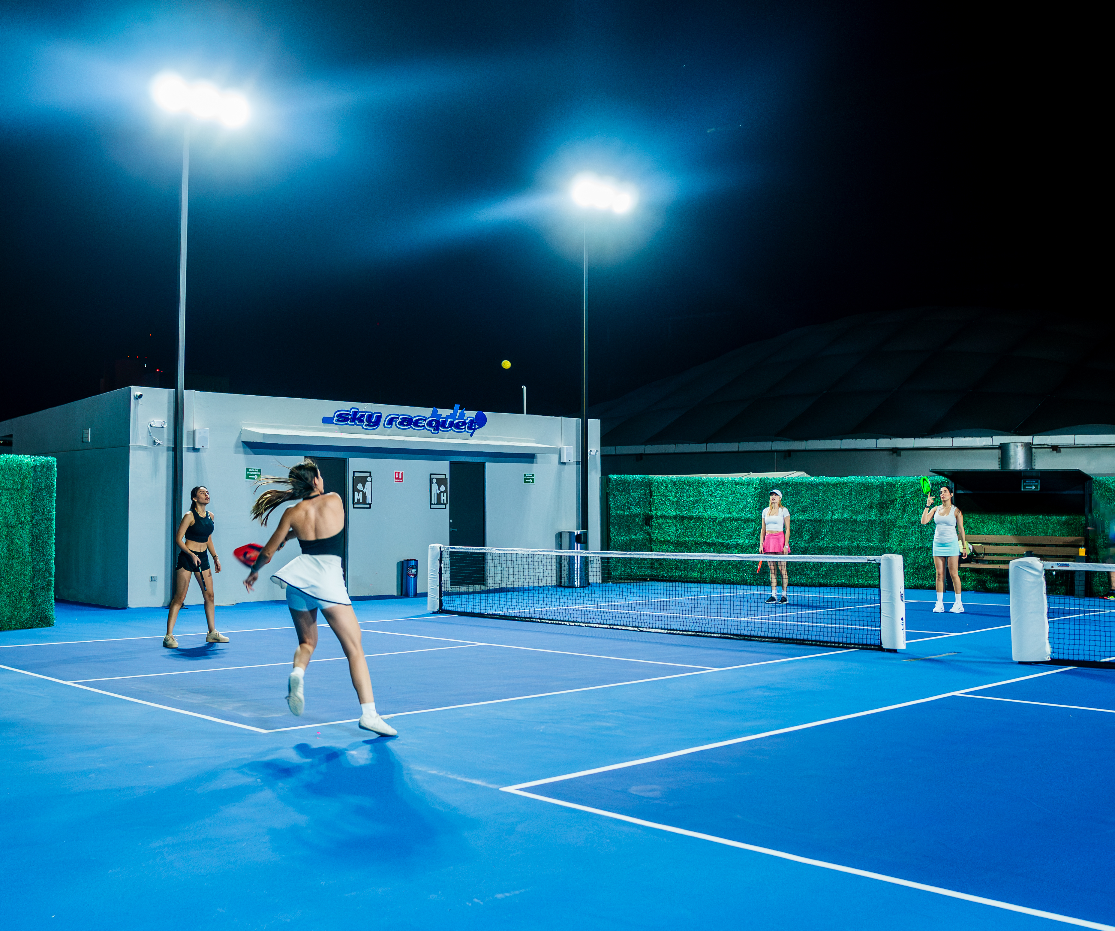 En Skyracquet, cada partido es una experiencia inigualable. La ubicación en la cima de Plaza Auriga convierte tu juego en un momento para disfrutar tanto de la competencia como de una vista espectacular.